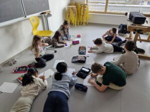 Passend zum Neuen Jahr und der Ballsaison haben sich die Kinder der Streicherklassen Gänserndorf Süd intensiv mit dem Thema Donauwalzer beschäftigt. Nachdem sie von ihren beiden Instrumentalpädagogen Manuel Brunner und Judith Ullmer viel Hintergrundwissen erhalten haben und auch selber ausprobieren durften, wie man die ersten Takte des Donauwalzers am Instrument spielen kann, durften sie sich am Ende der Stunde eine Aufnahme der Wiener Philharmoniker anhören und dazu Bilder malen. Die Farbstifte wirbelten fleißig im Takt, das Läuten der Schulglocke wurde überhört und mit viel mit Feuereifer wurden spätestens bei der Zugabe, mit dem nicht weniger bekannten „Radetzky Marsch“ die Zeichnungen fertig gestellt.